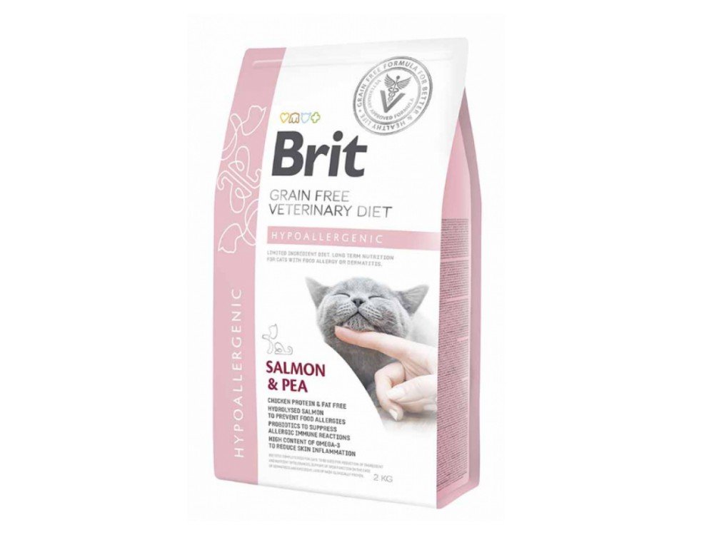 Eliminación de reacciones alérgicas y de intolerancia al alimento: Use únicamente agua y el alimento Brit VD Hipoalergénico para gatos por 6-8 semanas. No utilice otro alimento, snack o complemento, ya sea para mascotas o para personas.