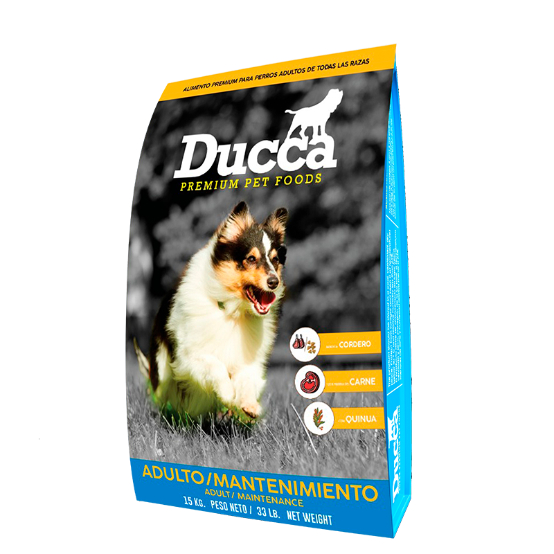Harina de carne Premium, harina de carne de pescado, Quinua, proteína concentrada de maíz, harinilla de trigo, Arroz, Levadura, Carbonato de calcio, ácido fólico, Biotina, saborizante de cordero, saborizante hidrolizado de hígado, saborizante orgánico de cordero, Zeolita, hierro, magnesio, antioxidantes, suplementos vitamínicos (A, C, D3, K3, B1, B2, B6, B12).