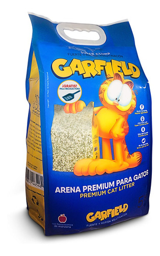 Arena de gato Garfield elaborado a base de bentonita, adicionalmente contiene cristales de sílice que le otorga mayor poder de aglomeración y control de olores. Con un suave y agradable olor a manzana.