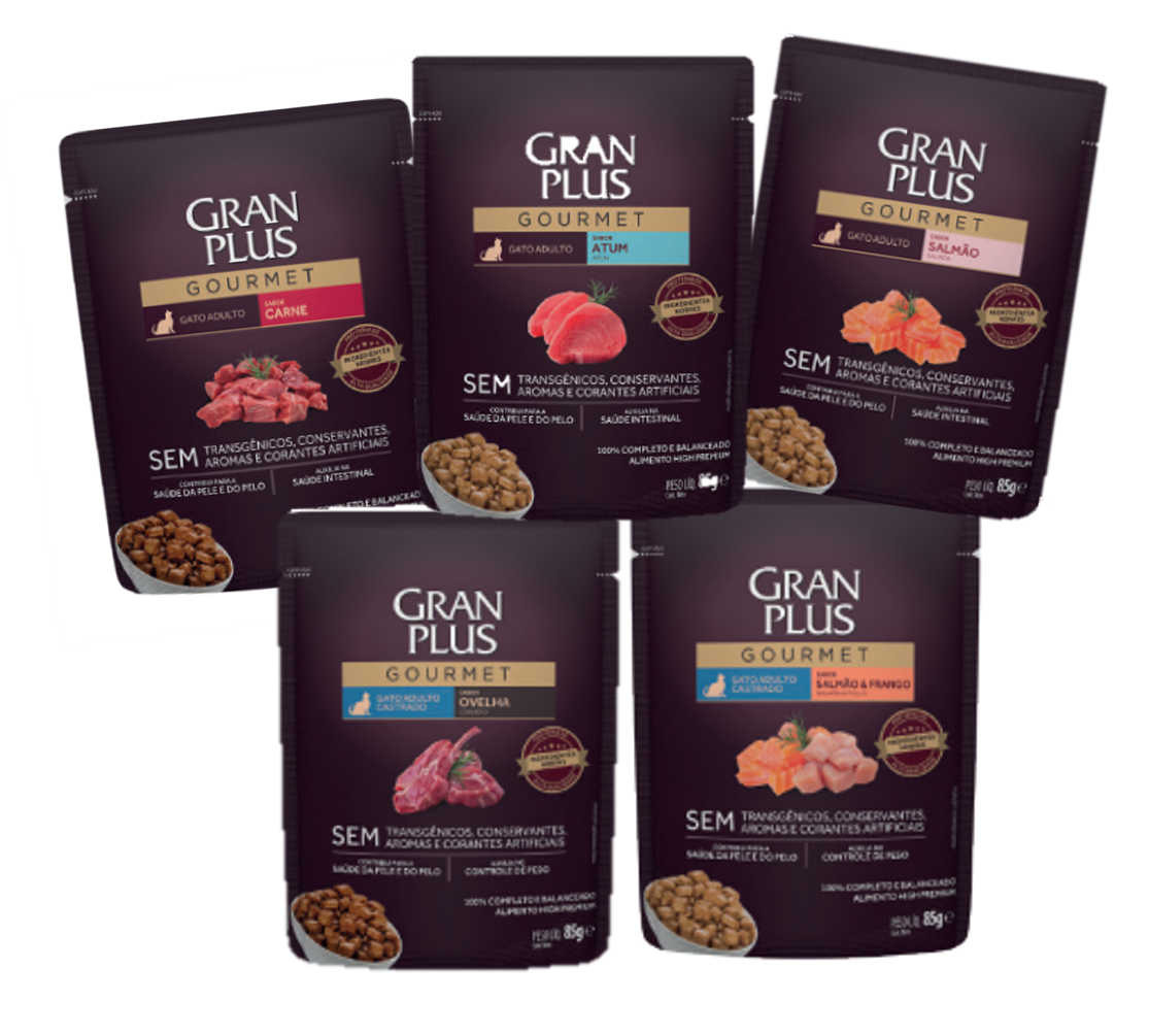Gran Plus Sobre Gato Gourmet Castrado Sabor Oveja o Sabor Salmón y Pollo, es un alimento húmedo en trocitos que son la delicia para tus gatos, porque el gusto y el cuidado siempre van de la mano.