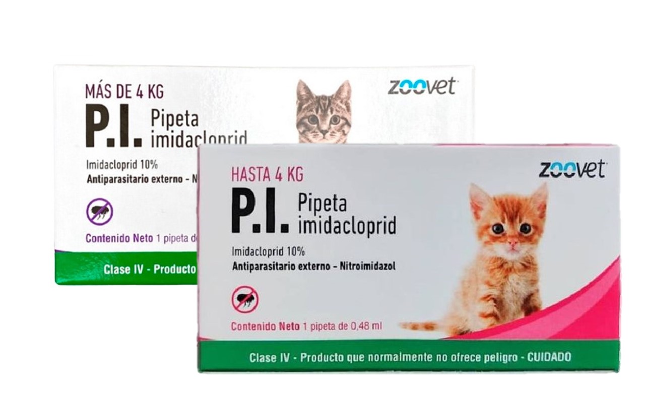 Imidacloprid: Insecticida de amplio espectro, eficaz únicamente contra pulgas.