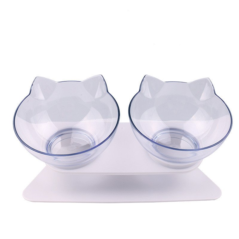 Ideal para colocar la comida y el agua en un solo lugar, con envase removible para facilitar su limpieza. Los platos tienen cara de gatito.